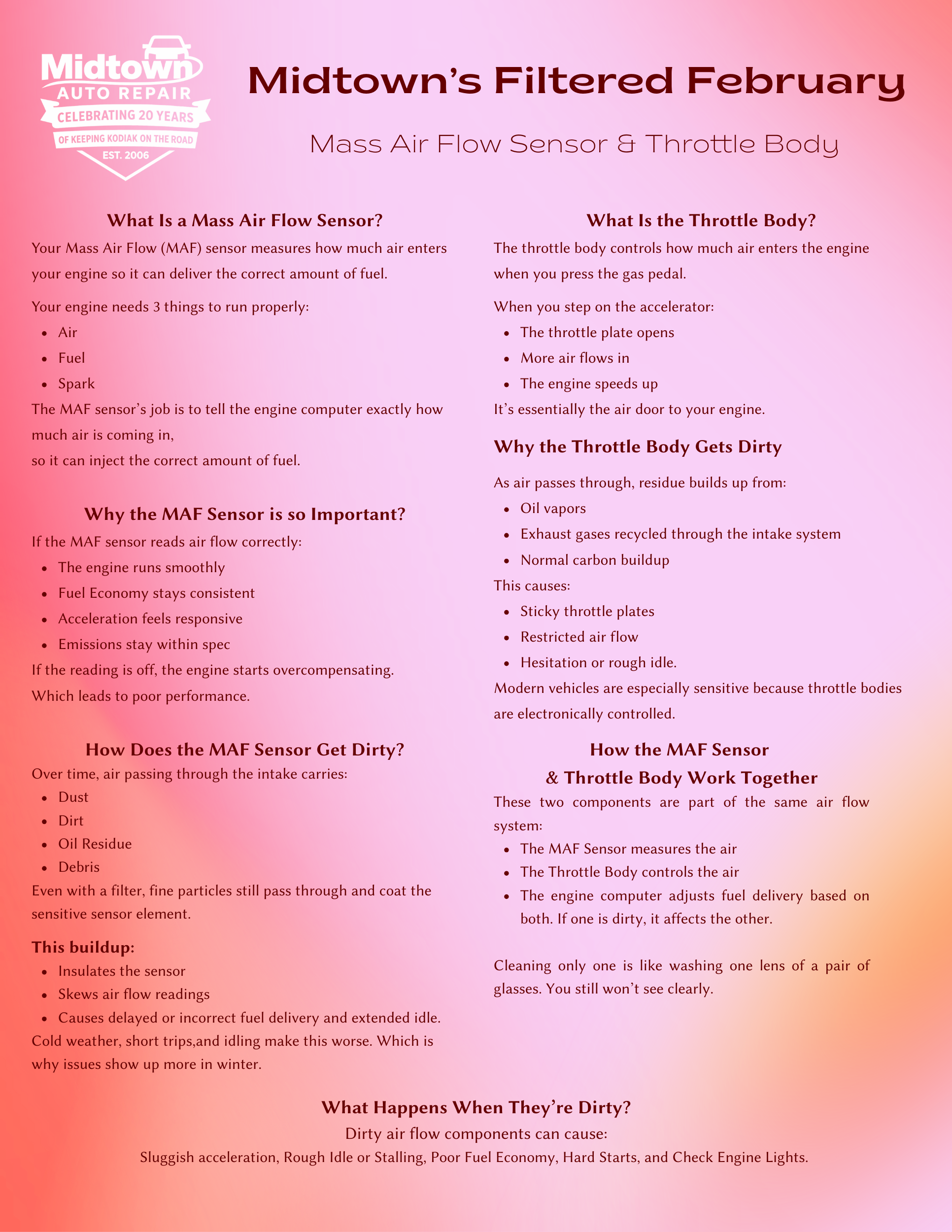 That’s why this month we’re highlighting one of our most important preventative services, Mass Air Flow & Throttle Body Cleaning.